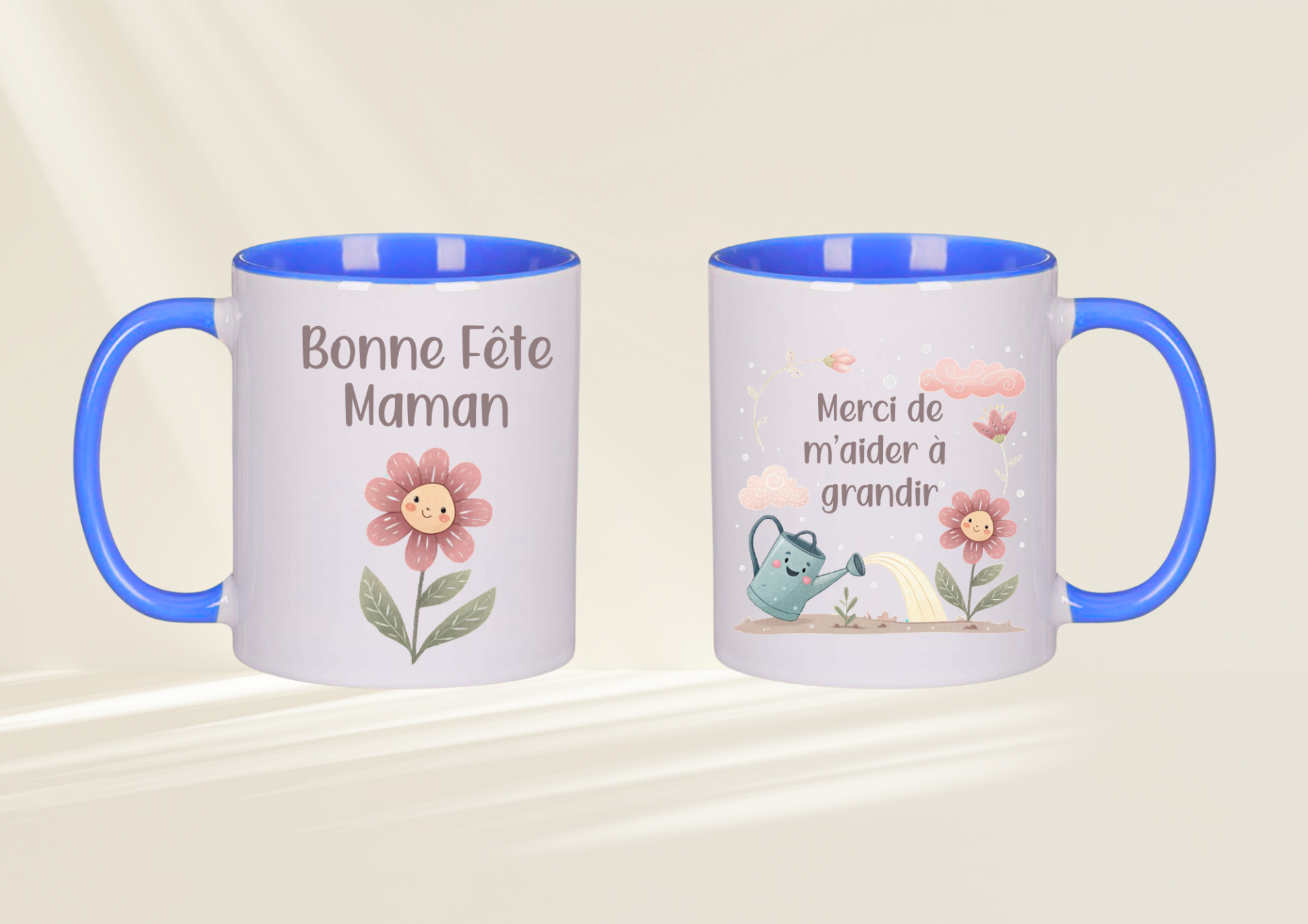Offrez bien plus qu’un simple mug : un moment d’émotion à chaque gorgée. Ce joli mug délicatement illustré célèbre l’amour et la gratitude avec ses messages touchants “Bonne Fête Maman” et “Merci de m’aider à grandir”.