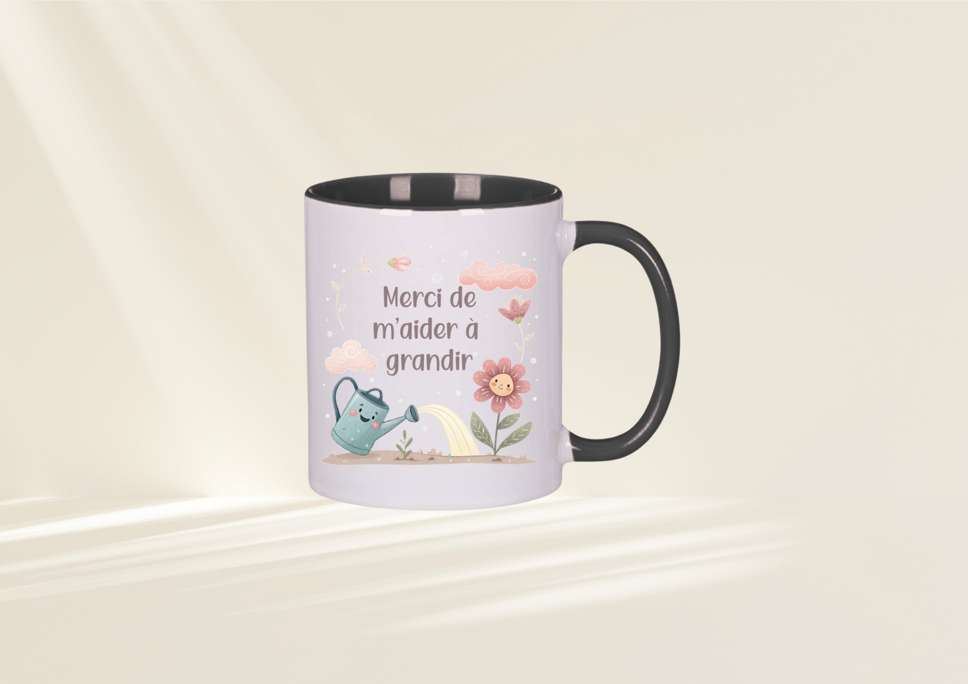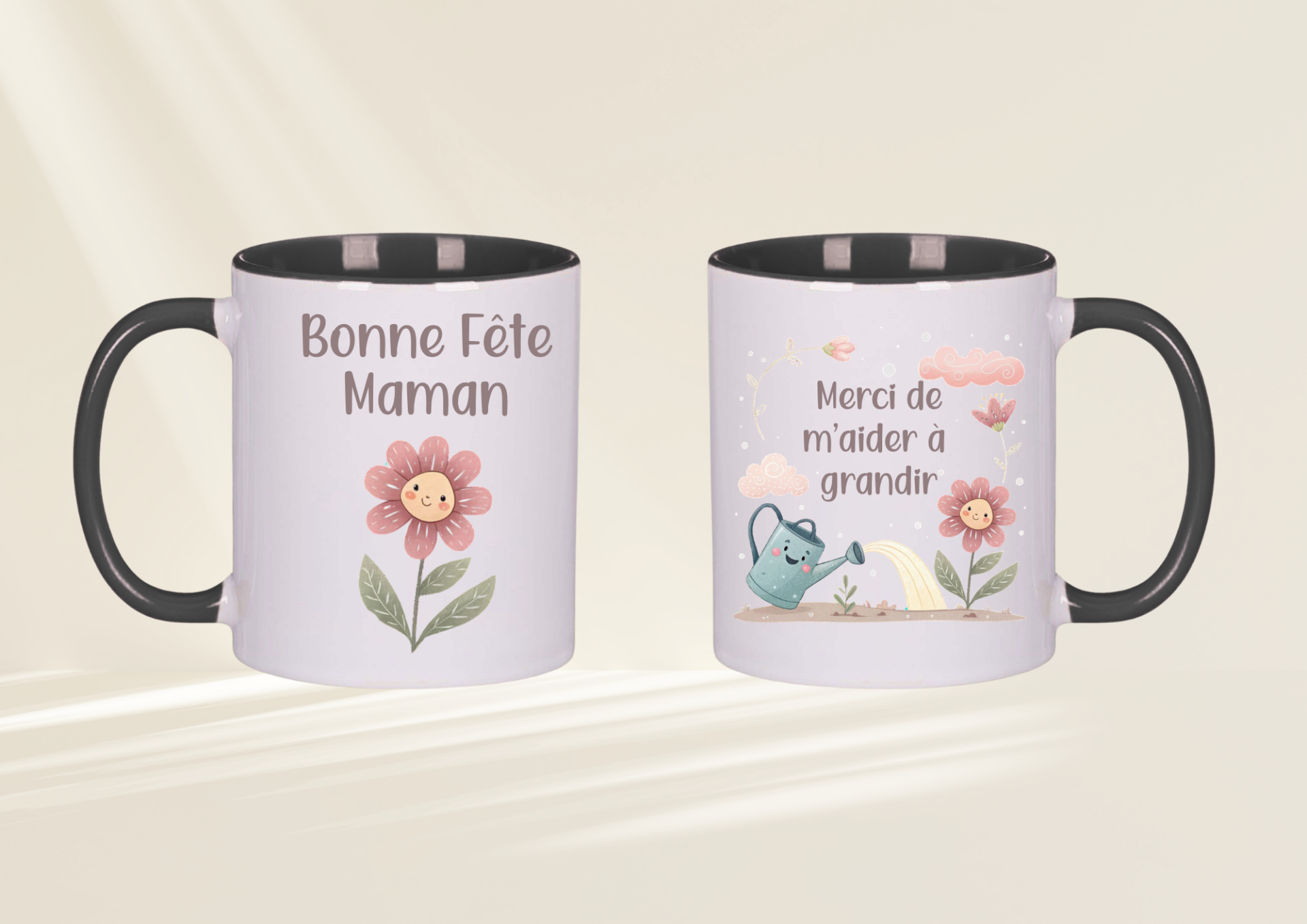 Offrez bien plus qu’un simple mug : un moment d’émotion à chaque gorgée. Ce joli mug délicatement illustré célèbre l’amour et la gratitude avec ses messages touchants “Bonne Fête Maman” et “Merci de m’aider à grandir”.