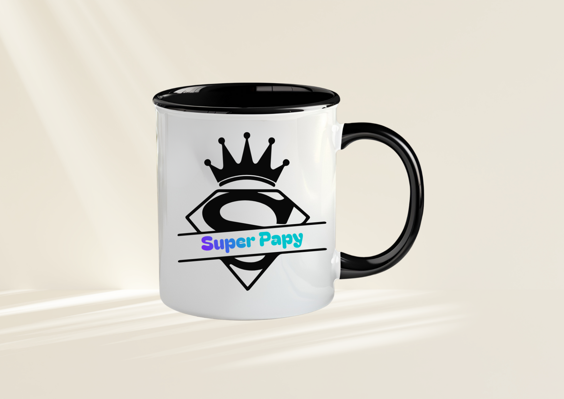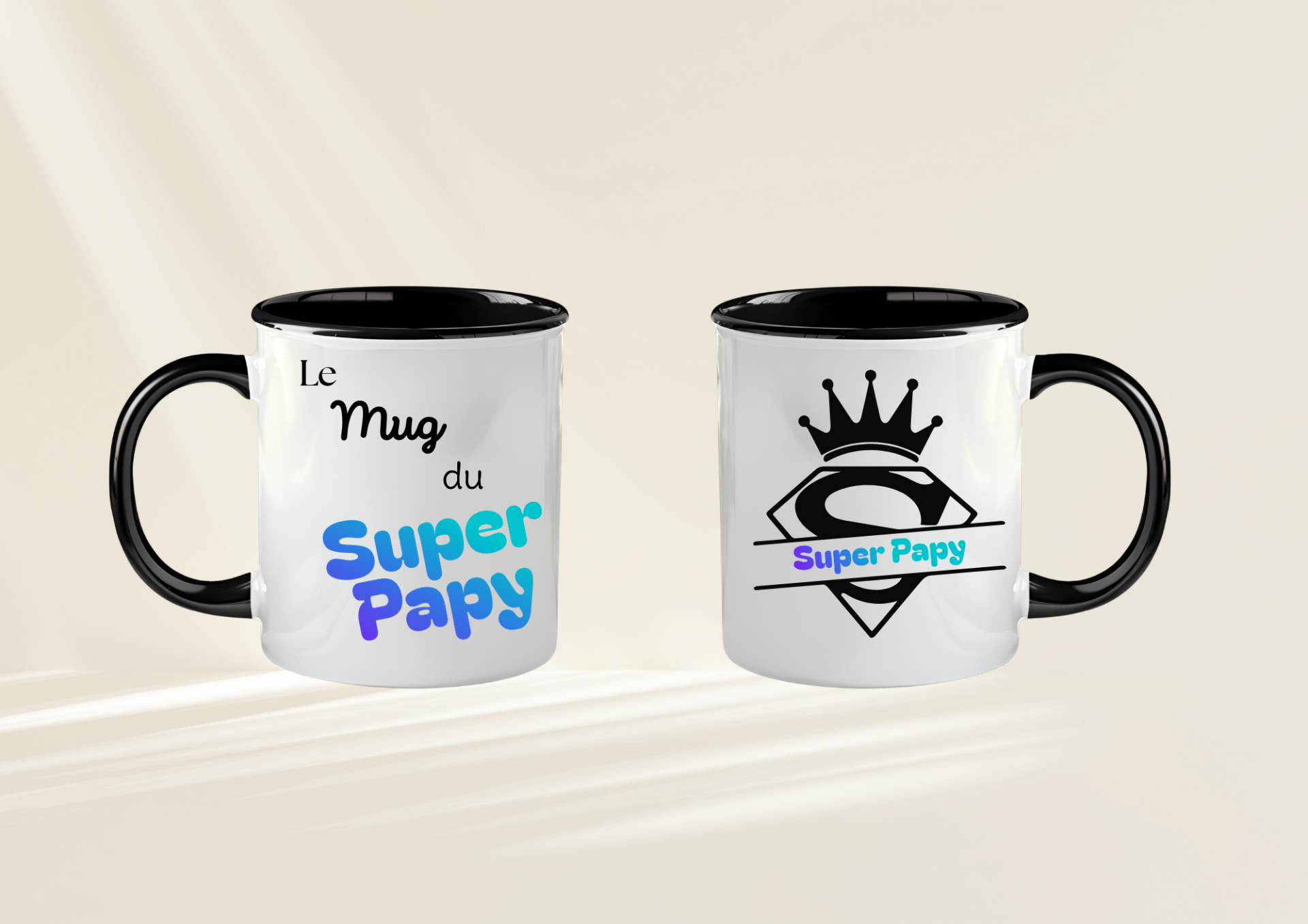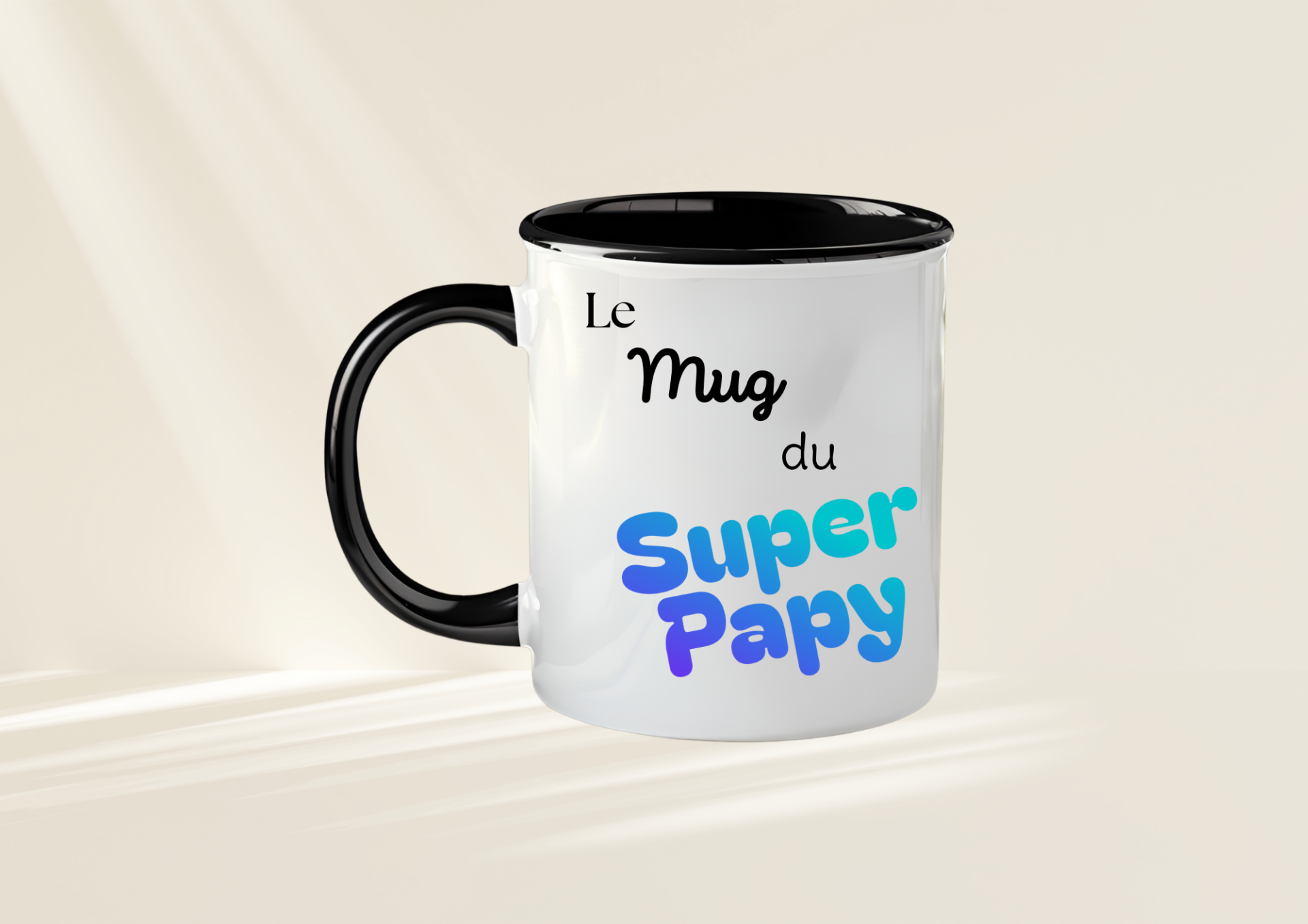 Mug intérieur et anse noir personnalisé "Le mug du Super Papy"