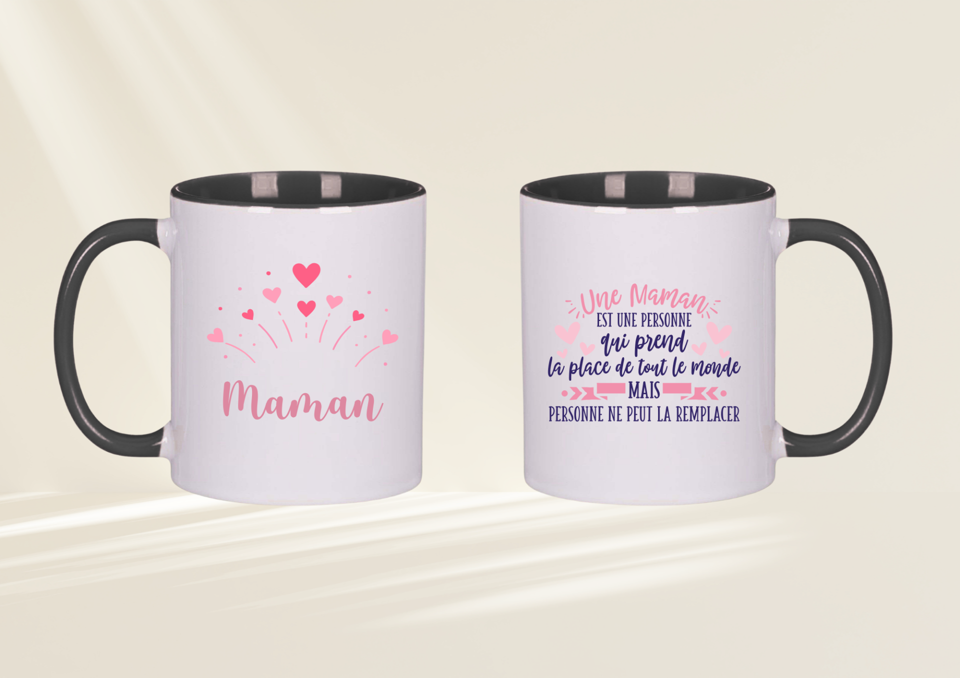 Offrez à votre maman un cadeau unique qui réchauffe le cœur à chaque pause café ou thé. Ce magnifique mug est décoré d’un design tendre et élégant avec des cœurs roses et le mot “Maman” sur une face, et un message touchant sur l’autre :