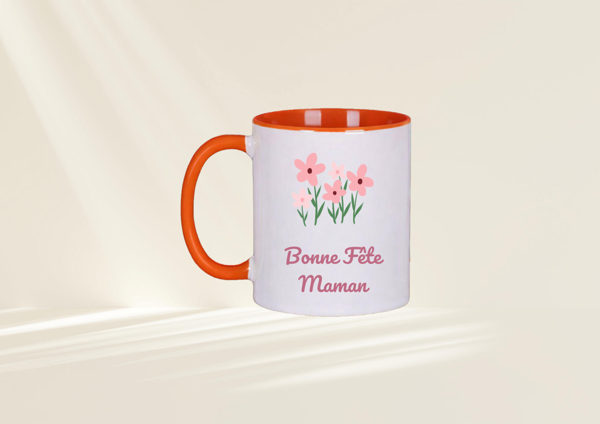 Élégance et Contraste : L’anse et l’intérieur orange apportent une touche de peps et de modernité qui sort du mug blanc classique.