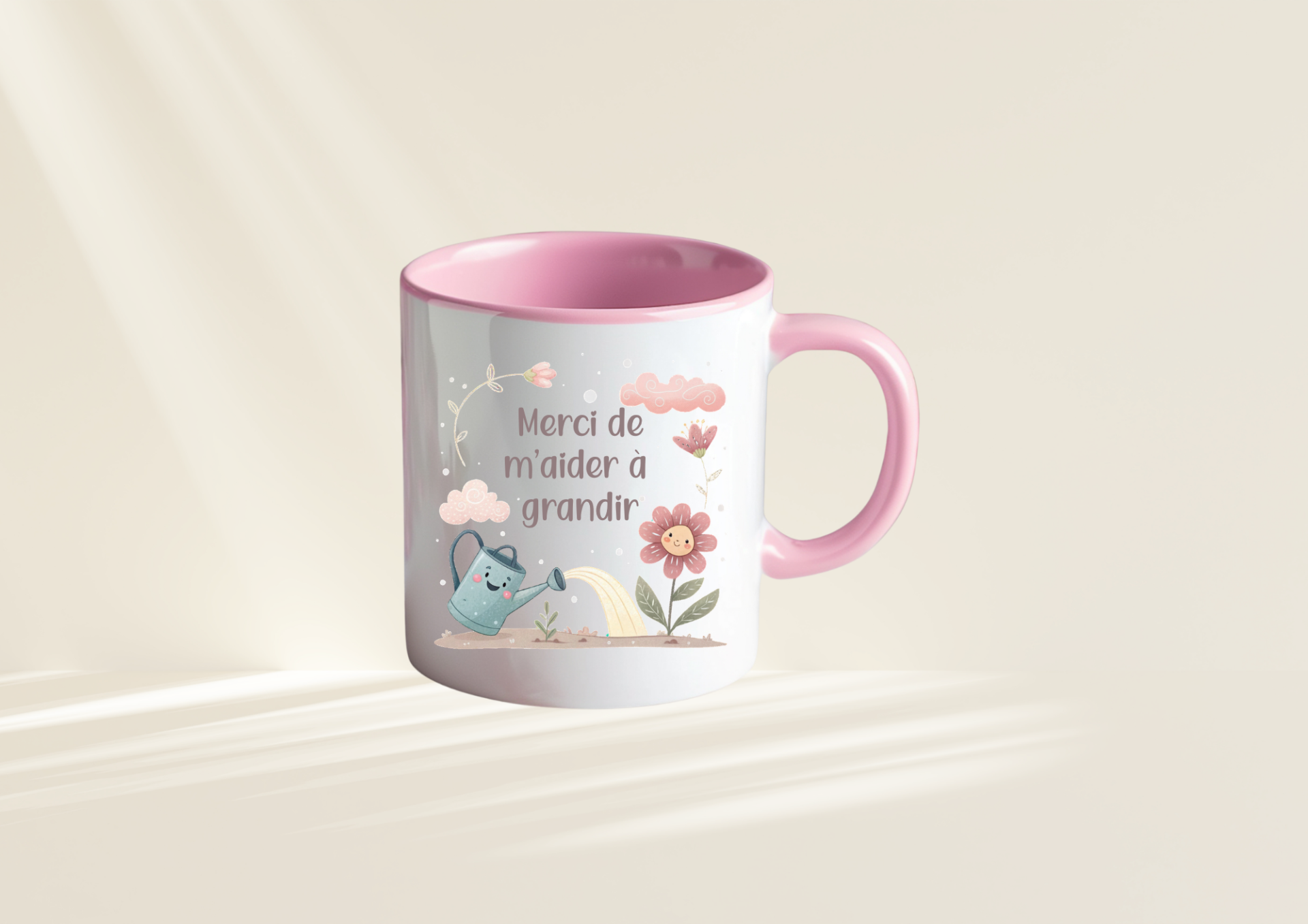 Offrez bien plus qu’un simple mug : un moment d’émotion à chaque gorgée. Ce joli mug délicatement illustré célèbre l’amour et la gratitude avec ses messages touchants “Bonne Fête Maman” et “Merci de m’aider à grandir”.
