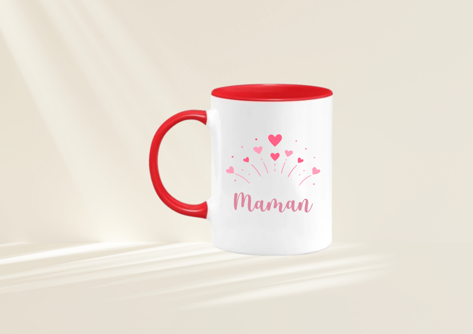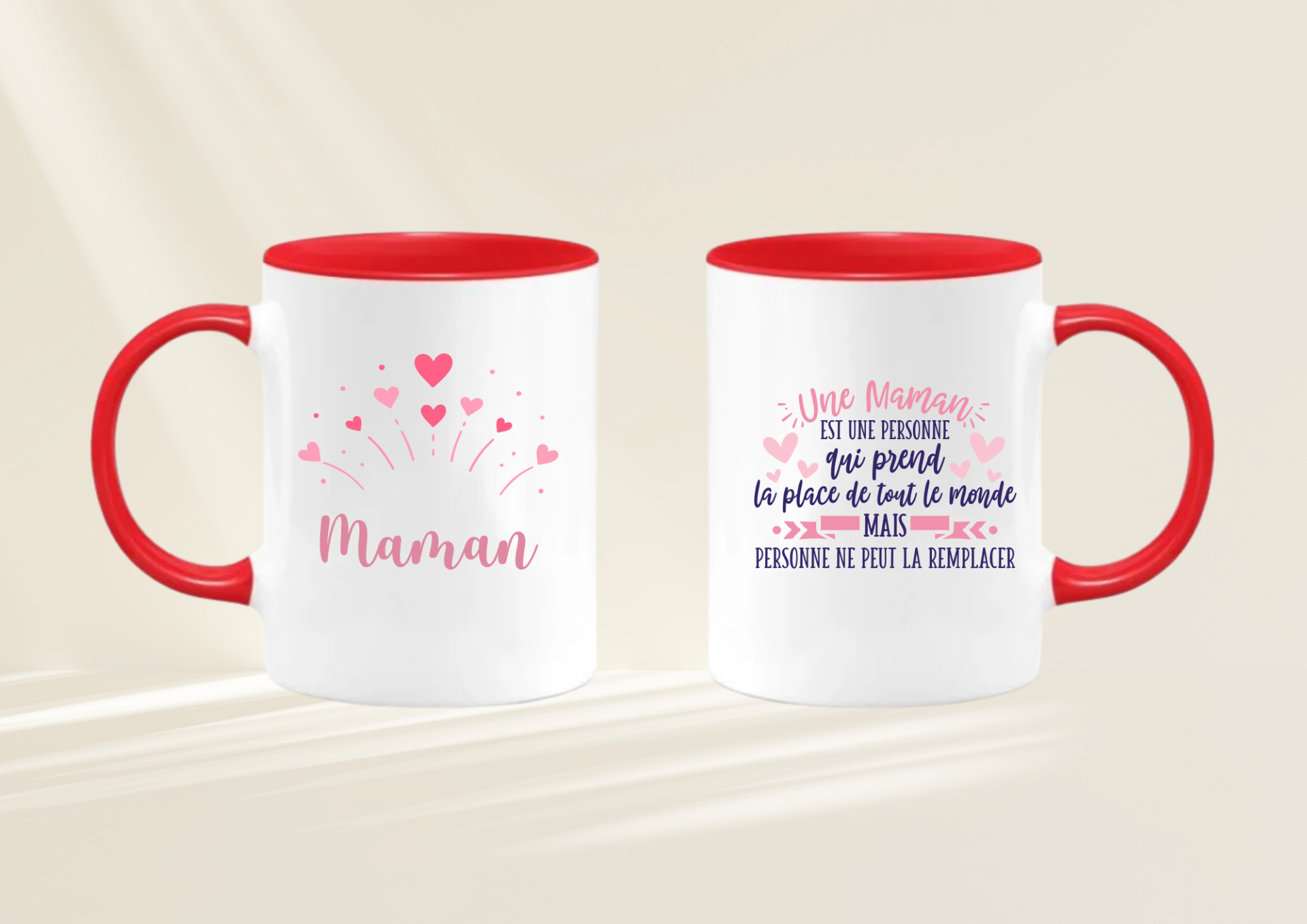 Offrez à votre maman un cadeau unique qui réchauffe le cœur à chaque pause café ou thé. Ce magnifique mug blanc est décoré d’un design tendre et élégant avec des cœurs roses et le mot “Maman” sur une face, et un message touchant sur l’autre :