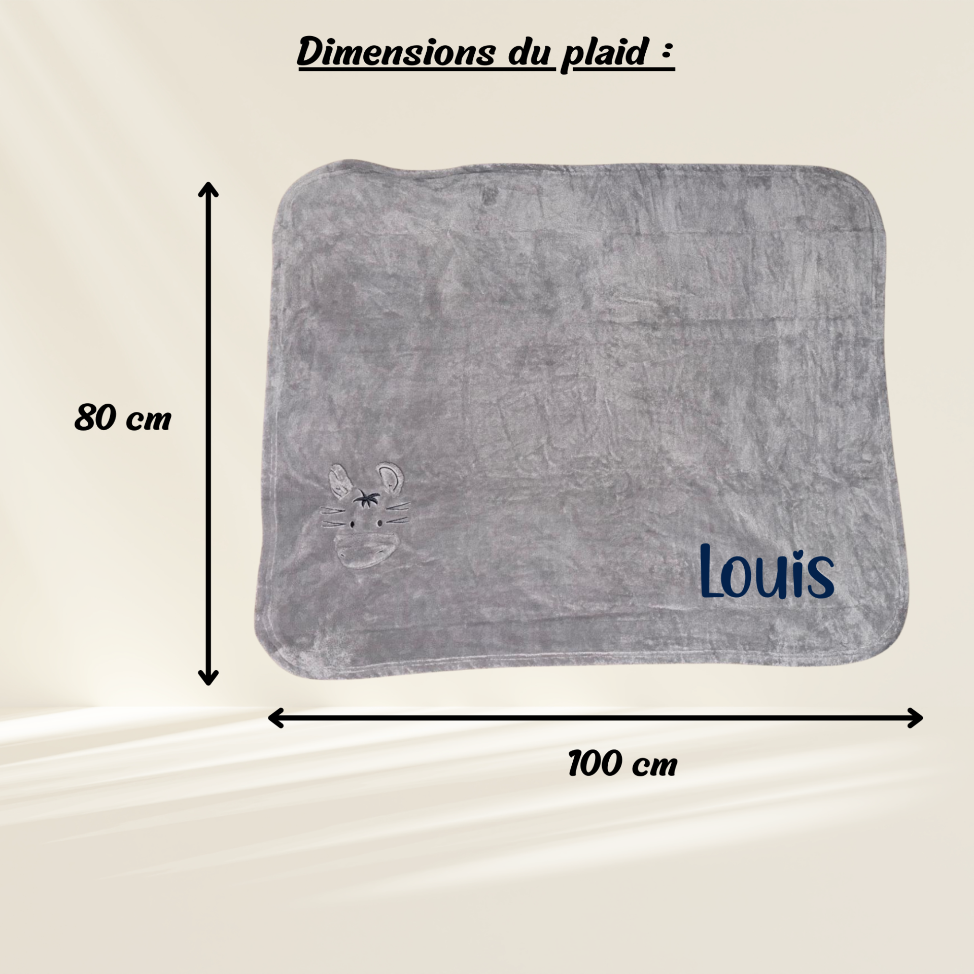 Plaid personnalisé Ane gris– 80 x 100 cm